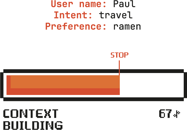 Dynamic context means the system knows when it has enough information, accros conversations.